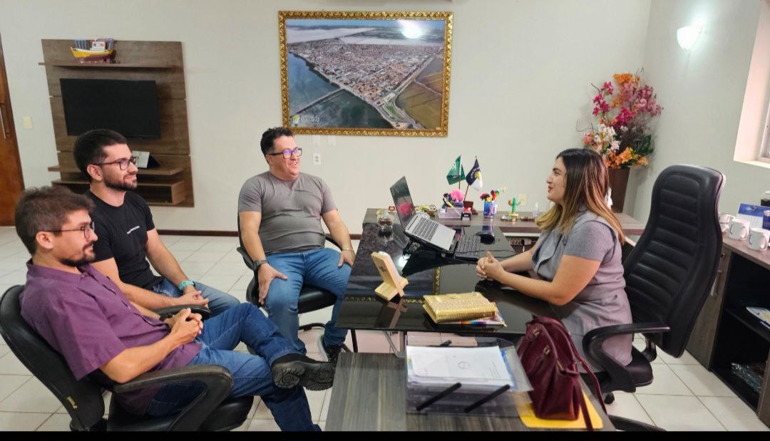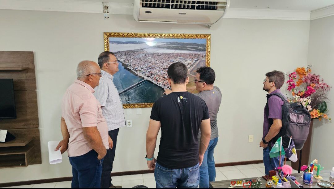 Nesta segunda-feira (27), a Prefeitura de Macau recebeu César Almeida, consultor fundiário da empresa Alto dos Ventos, responsável pelas tratativas para implantação de um complexo integrado de geração de energia e produção de hidrogênio verde na Costa Branca. A reunião contou com a participação da prefeita Flávia Veras, do secretário de Governo Airton Pereira, do secretário de Infraestrutura Ubiratan Bezerra, do secretário de Serviços Públicos Gabriel Nascimento e da servidora da Secretaria de Planejamento Josy.