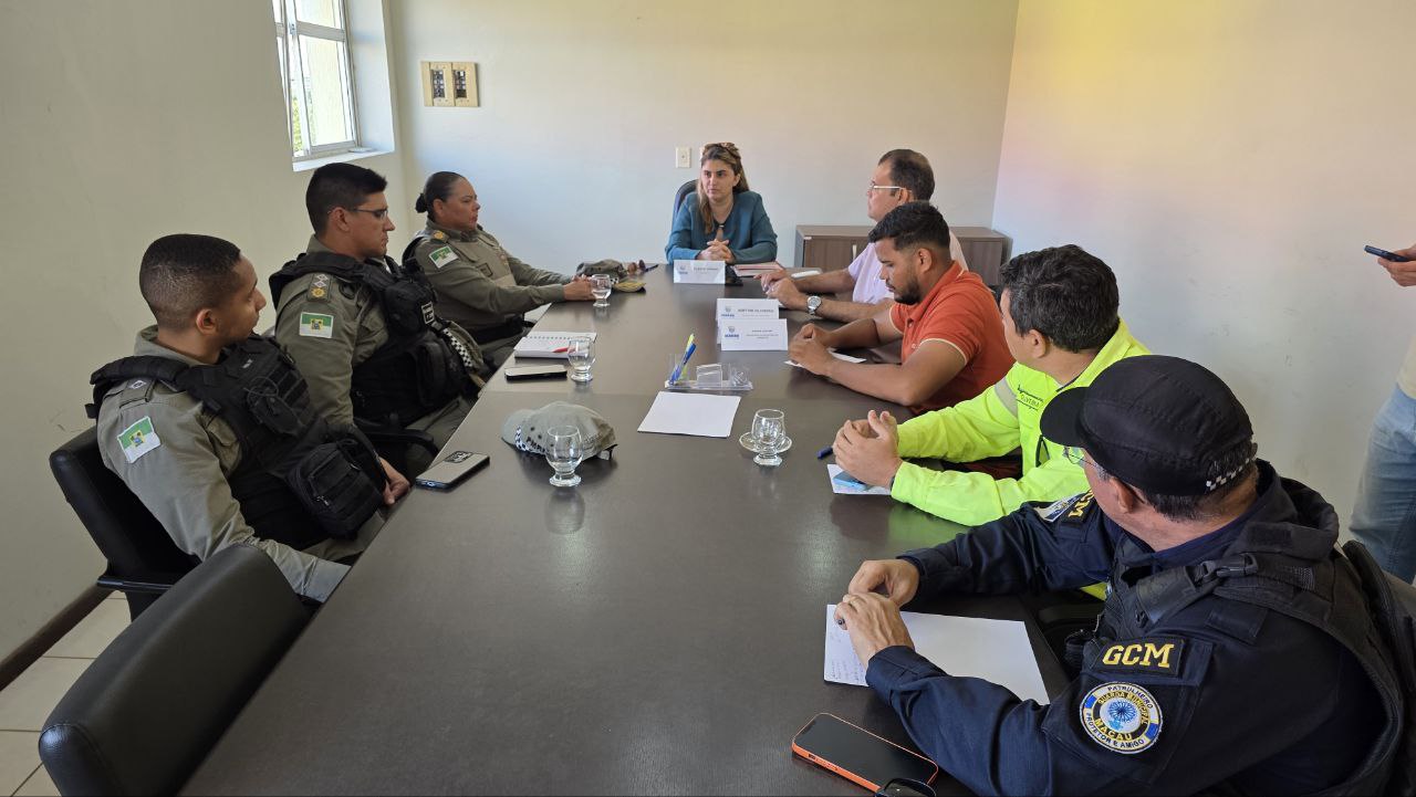 Além da prefeita Flávia Veras, participaram da reunião a coronel Josineide Xavier de Paiva; o comandante da 1ª Companhia Independente de Polícia Militar, major Moreno Montenegro; o tenente Neto; Severino Júnior, comandante da Guarda Municipal; o diretor do DEMUT, J. Oliveira; o secretário de Governo, Airton Pereira; e o secretário Pedro Victor.